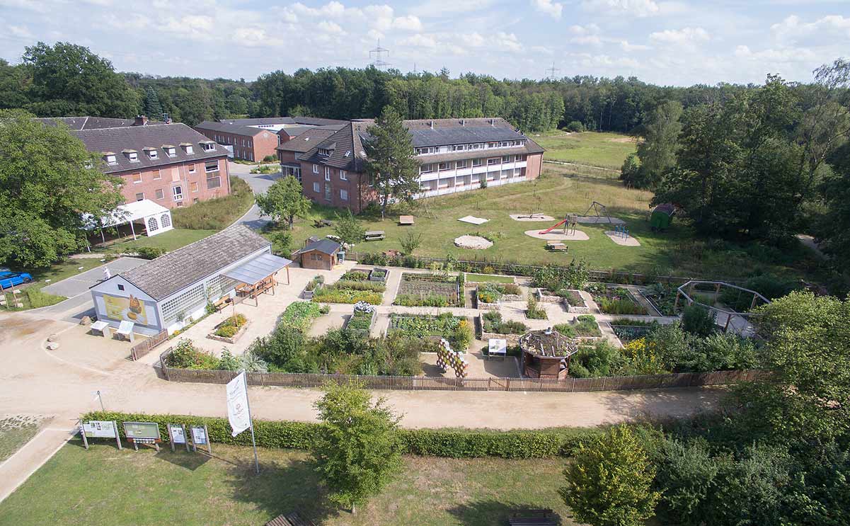 Der 2,5 Hektar große Garten ist Lernort für die Umweltbildung: Zwischen bunten Blumenwiesen, insektenfreundlichen Stauden und Gehölzen, Wildbienenhotels und Fledermausstollen lässt sich die heimische Artenvielfalt erleben. Düfte im Kräutergarten, Kostproben aus den Gemüsegärten oder Äpfel frisch vom Baum sorgen für Gartengenuss. Als Regionalzentrum im Landesnetzwerk „Bildung für nachhaltige Entwicklung“ gibt das Biologische Zentrum Anregungen zum nachhaltigen Handeln. Die NRW-Stiftung unterstützte den Verein Biologisches Zentrum Kreis Coesfeld e. V. bei der Grundausstattung sowie zwei Umbau- und Erweiterungsmaßnahmen.